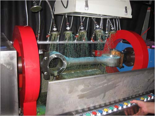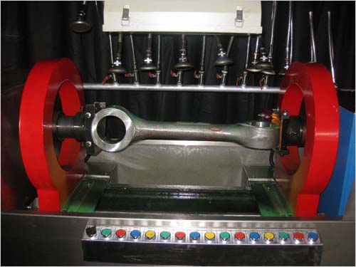 CDG-4000多功能熒光磁粉探傷機(jī)系機(jī)電組合式半自動(dòng)熒光磁粉探傷設(shè)備,由電源控制系統(tǒng)、夾持磁化裝置、磁懸液噴淋系統(tǒng),熒光系統(tǒng)等幾大部分組成,適用于以濕式磁粉法檢測(cè)由鐵磁性材料制成的連桿表面及近表面因鑄造、鍛造、加工、疲勞等各種原因引起的裂紋和各種細(xì)微缺陷。
