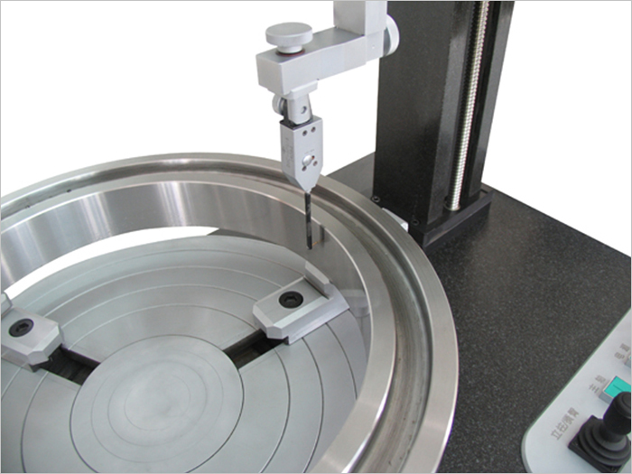 YD400/600/1000大型圓度測量儀是以大承重高精度氣浮主軸為基準(zhǔn),采用計(jì)算機(jī)測量系統(tǒng)的轉(zhuǎn)臺(tái)式通用型圓度儀,適用于圓環(huán)、圓柱等大型回轉(zhuǎn)體工件的的圓度、波紋度、同軸度、同心度、垂直度、平行度等參數(shù)的測量,主要應(yīng)用于大型軸承、發(fā)動(dòng)機(jī)、機(jī)床、紡機(jī)、航空航天等精密機(jī)械制領(lǐng)域。儀器主要由大承重高精度氣浮主軸、精密調(diào)平調(diào)心工作臺(tái)、花崗巖臺(tái)面、電動(dòng)花崗巖立柱、高精度電感測頭、精密旋轉(zhuǎn)編碼器、驅(qū)動(dòng)控制電箱、高精度測量電箱、空氣過濾干燥系統(tǒng)以及基于windows XP的專用測量分析軟件組成。